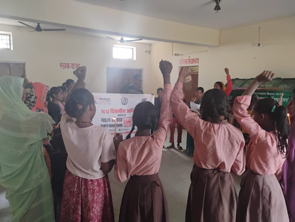 सोनभद्र। दिनांक 28-11-2025 को रावर्टसगंज ब्लाक के गांव तिलोली,रैपुरा सहित विभिन्न स्थानो पर बाल विवाह के रोकथाम हेतु समुदायो मे जागरूकता कार्यक्रम का आयोजन किया गया। ग्राम स्वराज्य समिति देश में बाल अधिकारों के संरक्षण के लिए नागरिक समाज संगठनों के देश के सबसे बड़े नेटवर्क जस्ट राइट्स फॉर चिल्ड्रेन का सहयोगी संगठन द्वारा जिसमे संस्था निदेशक महेशानंद भाई द्वारा बताया गया की बाल विवाह मुक्त सोनभद्र बनाने के लिए सौ दिन तक गहन जागरूकता अभियान चलाया जा रहा हैं जिसको तीन चरणों में बांटा गया है