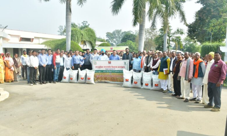 26-11-2025, रेणुकूट। अनुसूचित जनजाति विकास कार्यक्रम अंतर्गत आई.सी.ए.आर. मऊ द्वारा प्रदत्त गेहूँ बीज का वितरण हिण्डाल्को रेणुकुट के क्लस्टर हेड श्री समीर नायक के निर्देशन एवं कलस्टर एच. आर. हेड श्री जसबीर सिंह के मार्गदर्शन एवं सी॰एस॰आर॰ प्रमुख एच. आर.अनिल झा के नेतृत्व में आदित्य बिडला रूरल टेक्नोलॉजी पार्क म्योरपुर में आयोजित कार्यक्रम के माध्यम से किया गया।