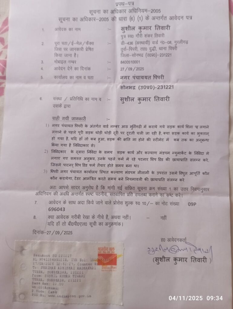 दो महीना बित जाने के बाद भी अधिशासी अधिकारी ने नही दिया आरटीआई का ज़बाब, शासन के आदेशों का उड़ा रहे खुले आम धज्जियां , )