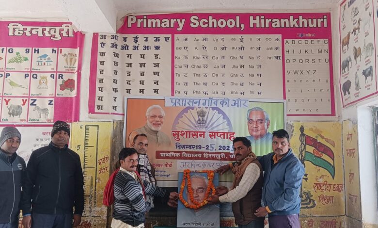 प्राथमिक विद्यालय में सुशासन सप्ताह का शुभारंभ, अटल बिहारी वाजपेयी को दी गई श्रद्धांजलि