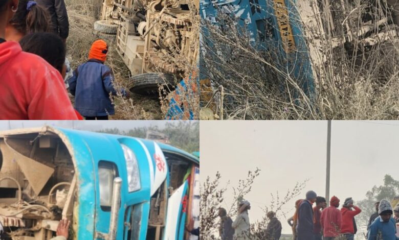 अनियन्त्रित होकर बस पलटी, आधा दर्जन से अधिक यात्री घायल