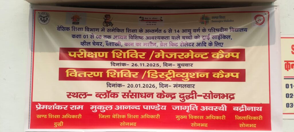 20 जनवरी को बीआरसी, दुद्धी में समेकित शिक्षा के अंतर्गत परिषदीय विद्यालयों के कक्षा 1 से 8 तक अध्ययनरत विशिष्ट आवश्यकता वाले दिव्यांग बच्चों को ट्राई साइकिल,व्हील चेयर,वैशाखी,कान की मशीन,ब्रेल किट रोलेटर आदि वितरित किए गए।इस अवसर पर लगभग 12 ट्रायसाइकिल और व्हीलचेयर,4 मूक बधिर बच्चों को हियरिंग एड,मानसिक दिव्यांग 4 बच्चों को MR किट,नेत्र दिव्यांग 4 बच्चों को वी आई किट, पूर्ण विकलांग 2 बच्चों को सीपी चेयर,चलने में दिव्यांग 9 बच्चों को रोलेटर,पूर्ण रूप से नेत्रहीन बच्चे को 1 स्मार्टमैन वितरित किया गया।