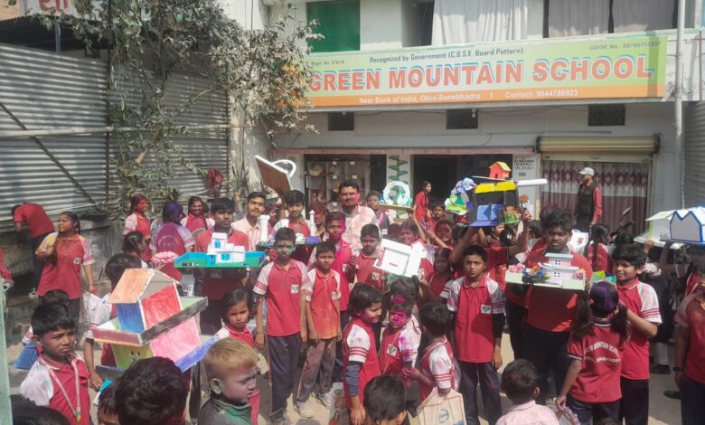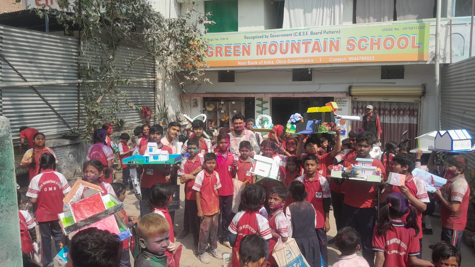 ओबरा सोनभद्र नगर स्थित कई स्कूलों में आज शनिवार के दिन ग्रीन माउंटेन स्कूल चोपन रोड ओबरा में पठन-पाठन का अंतिम कार्य दिवस होने के कारण स्कूलों में जमकर होली खेली गई इसके बाद होली तक विद्यालय बंद रहेगा इस होली में रंग-बिरंगे बच्चे ऐसे नजर आ रहे थे जैसे वातावरण में तितलियां मंडरा रही हो इनके साथ ही साथ अध्यापक और गार्जियन भी रंगों में सारा बोर नजर आए होली खेलने में सबसे ज्यादा आनंद छोटे-छोटे नन्हे मुन्ने बच्चों ने लिया यह बच्चे अपने साथ पढ़ने वाले हर एक बच्चे को अबीर गुलाल लगा करके रंगीन बना दिया जिस स्कूल का वातावरण रंग में हो गया