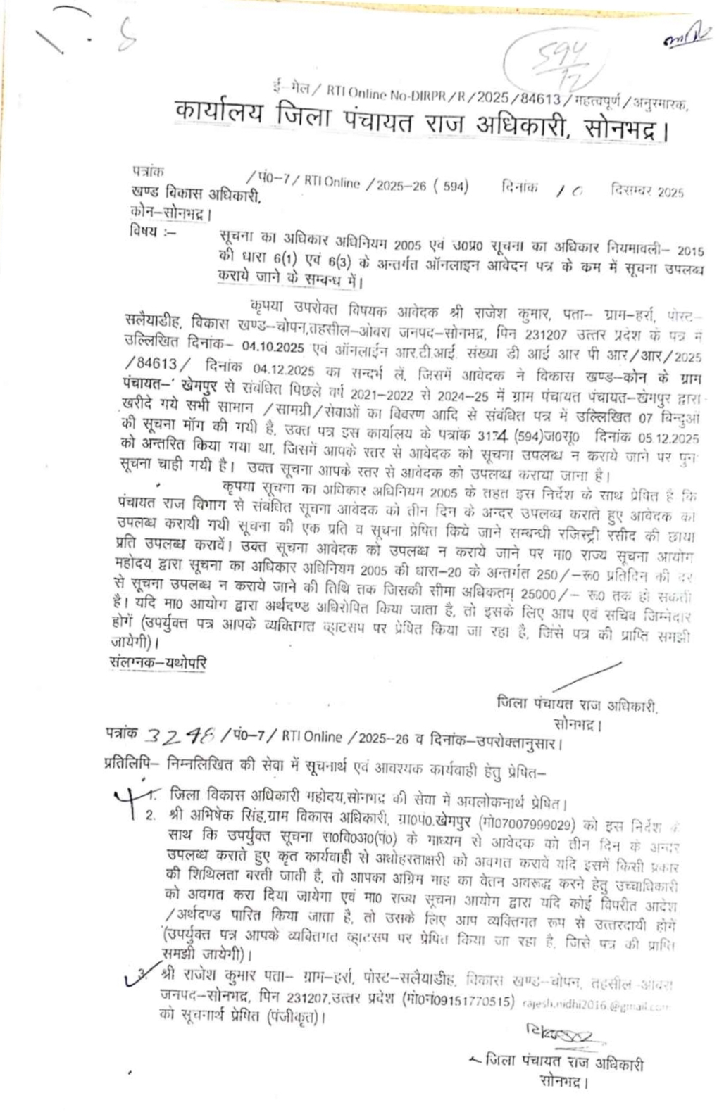 विकास खण्ड कोन में आर टी आई बना मजाक, खुली ग्राम पंचायत खेमपुर की पोल मामले में कार्यवाही होती है या सिर्फ विभागीय खानापूर्ति